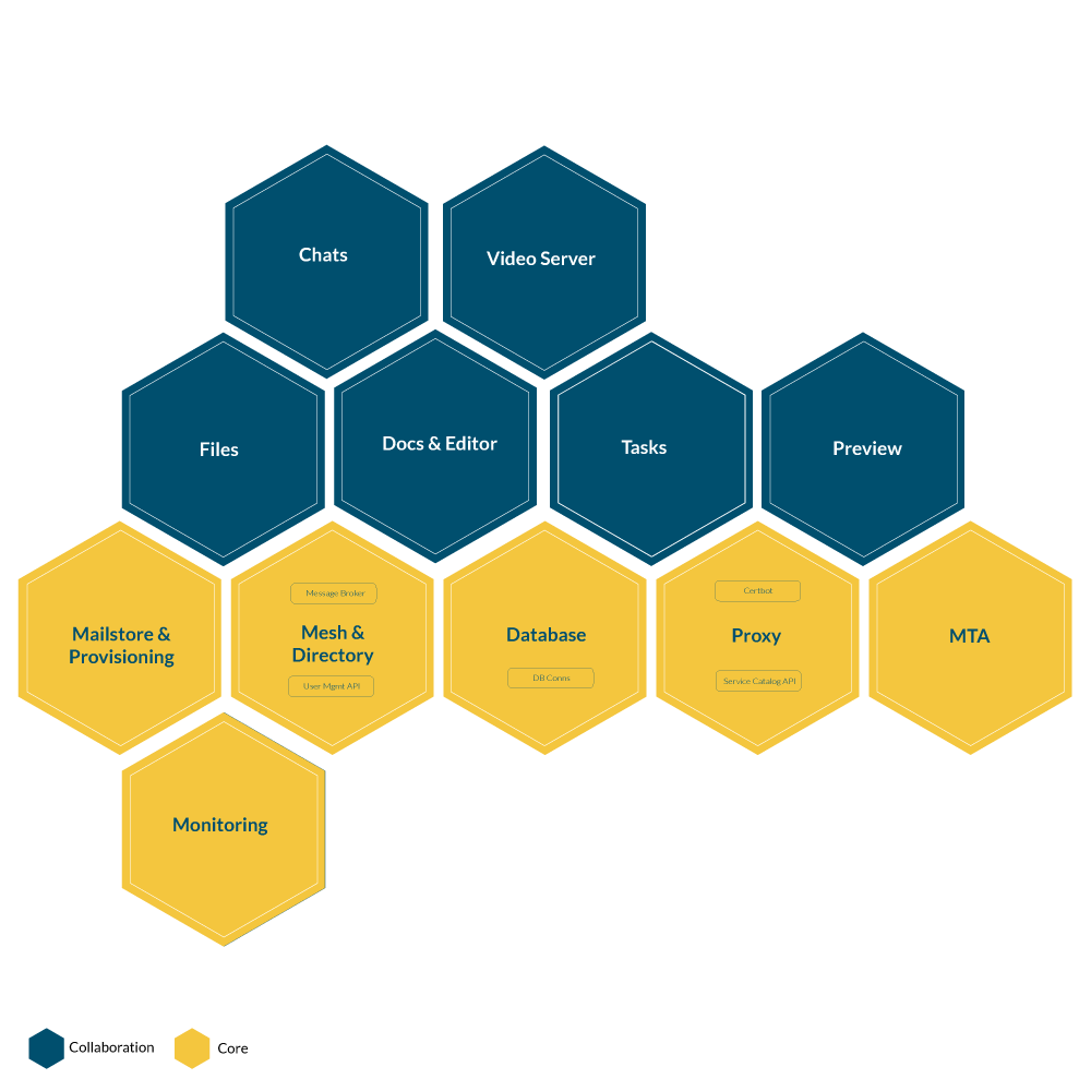 Carbonio CE is built on a multi-component architecture. Each component is responsible for a specific part of the collaboration suite and can be installed on a Carbonio CE node.