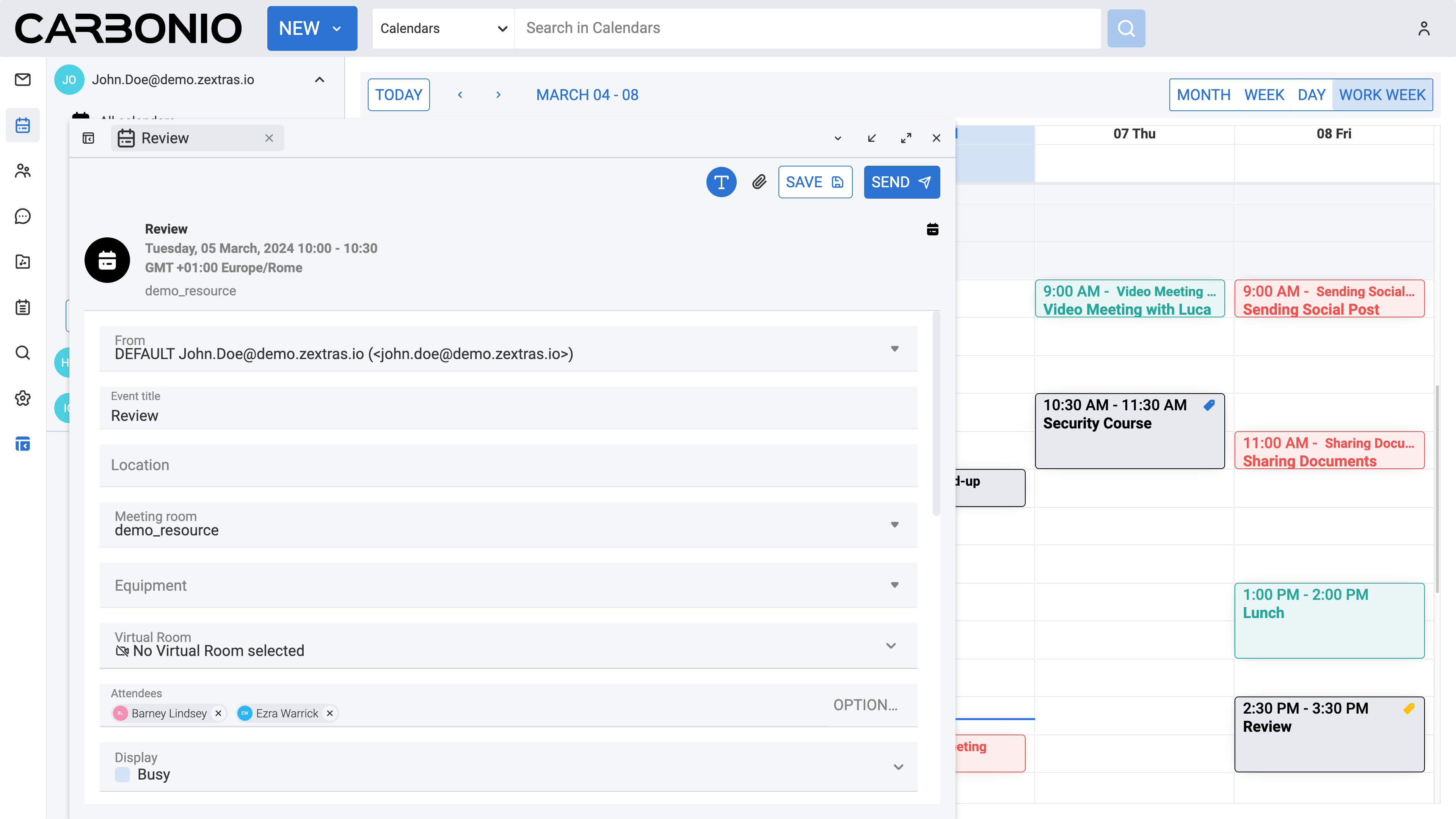 If you have created the appointment solely for yourself, click SAVE. If your appointment includes attendees, click SEND to notify them about the changes via an automatic email.