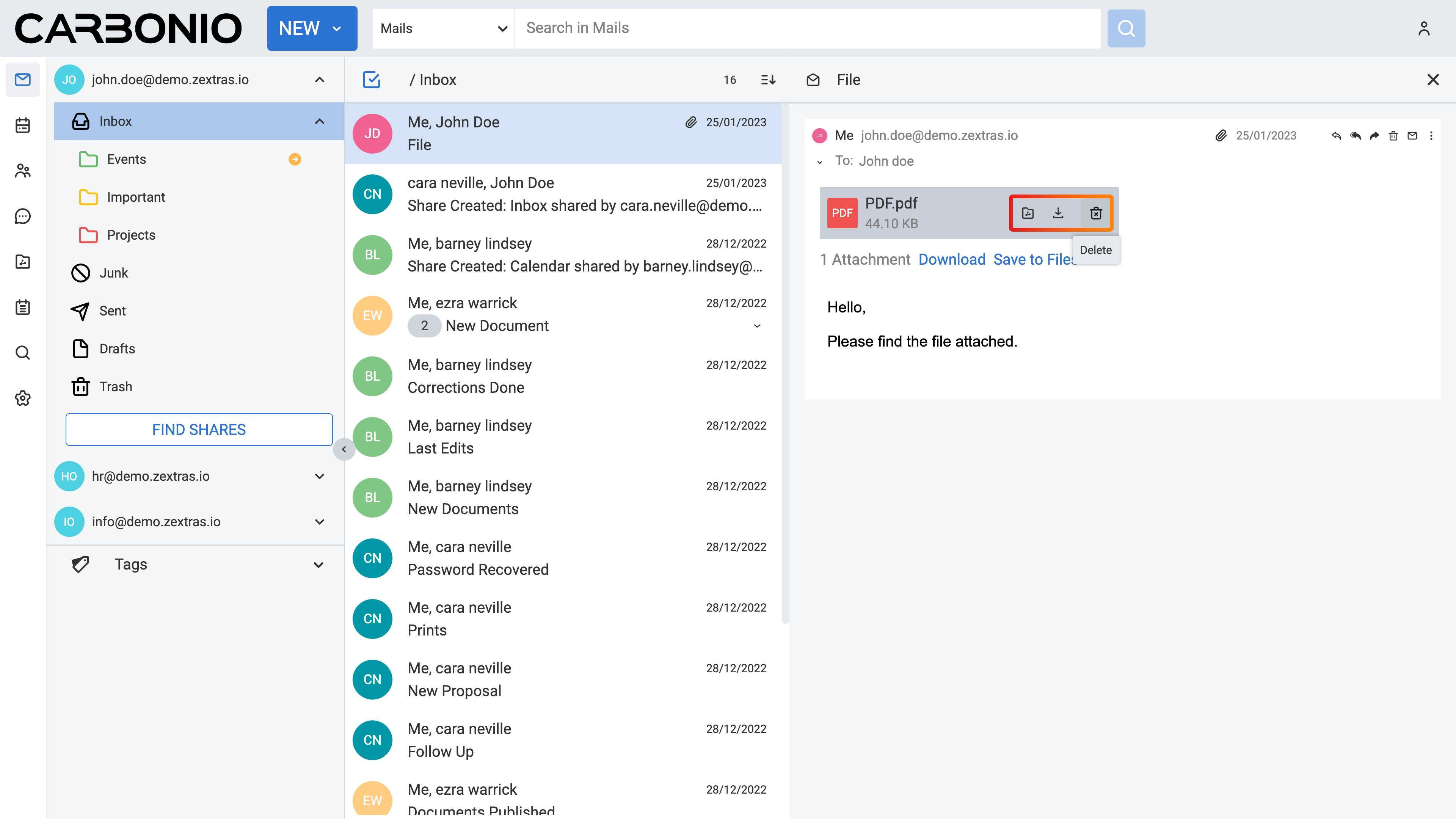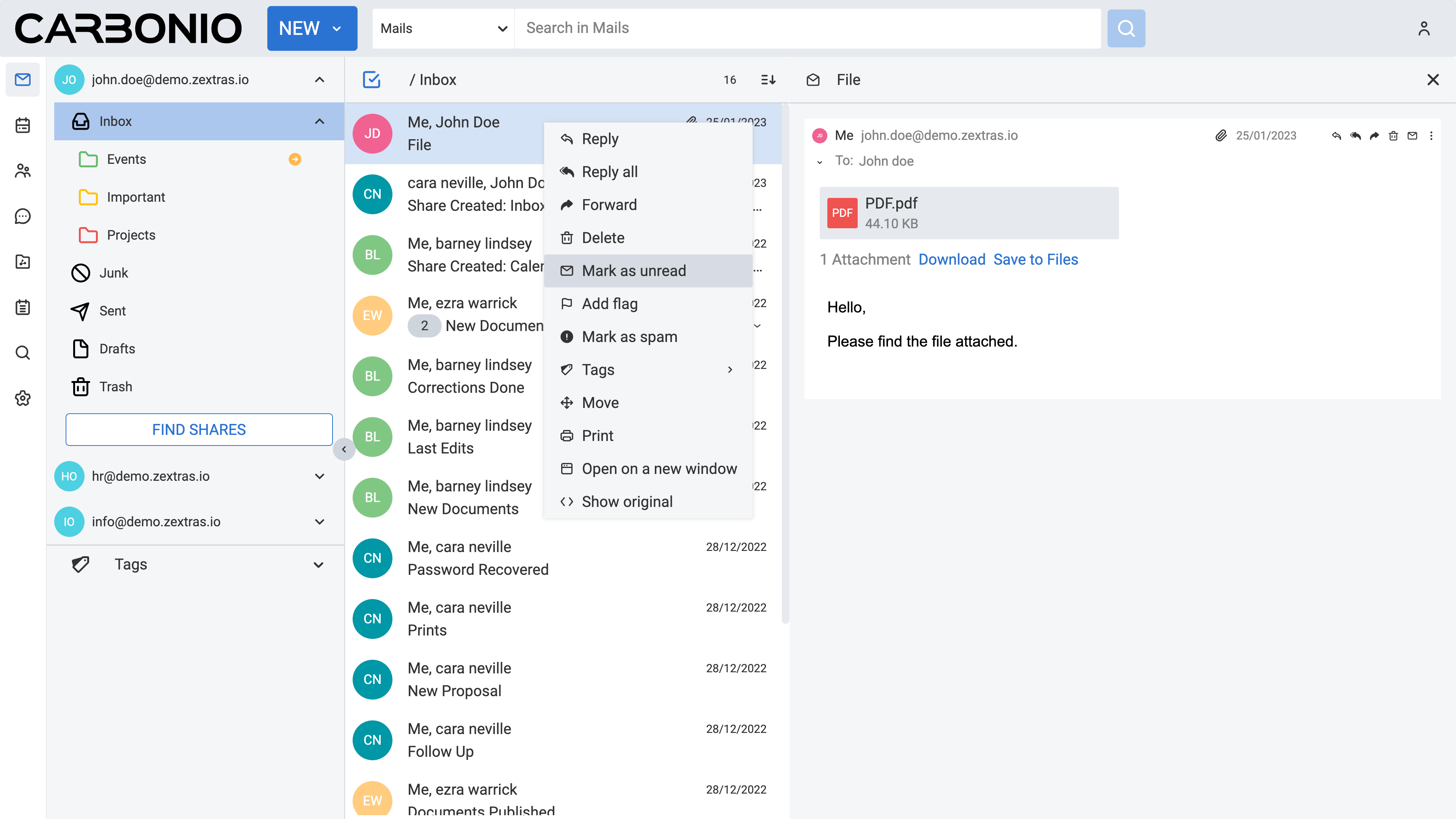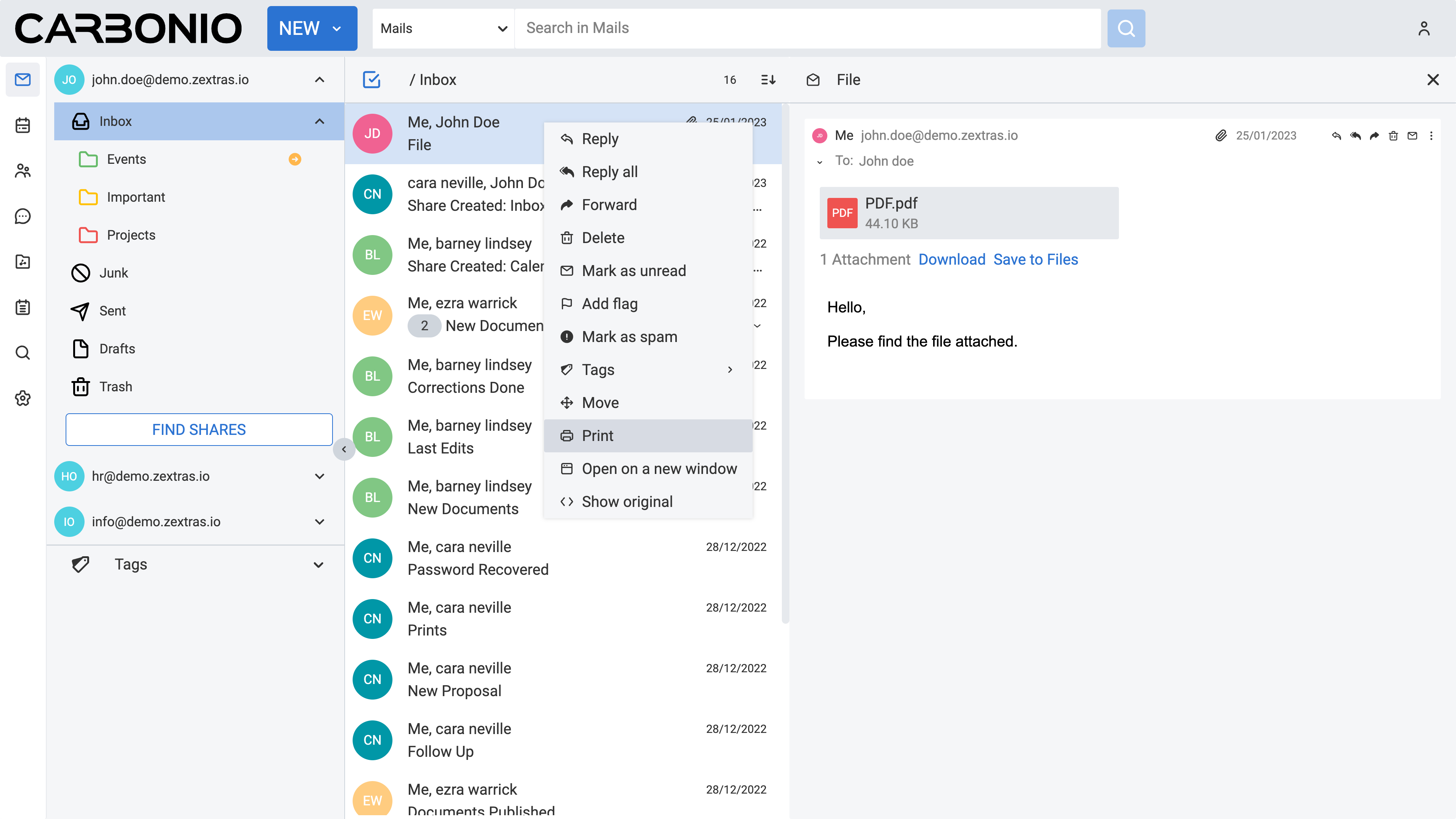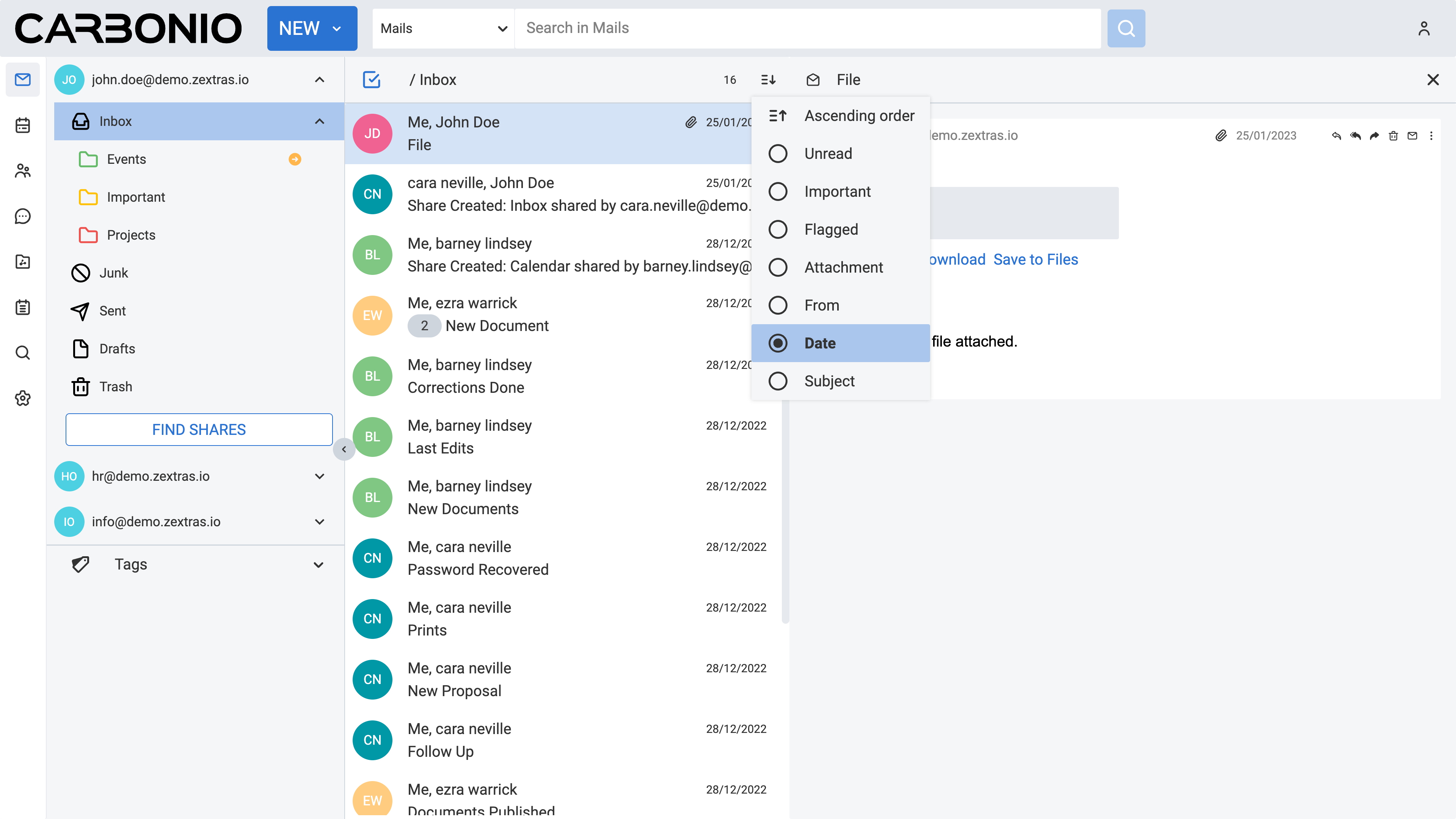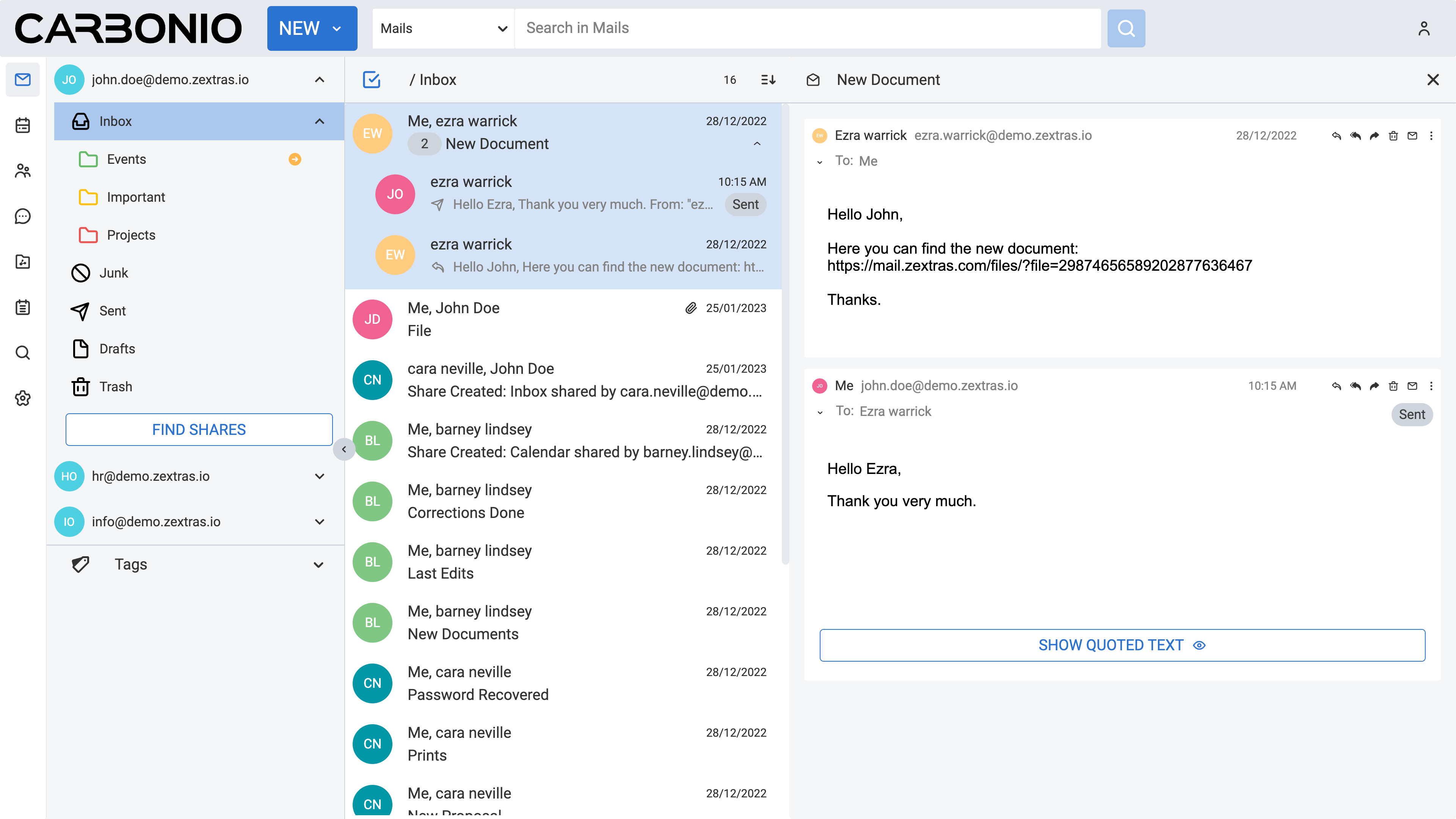 Within the Carbonio web client, there are two distinct methods for displaying emails:
