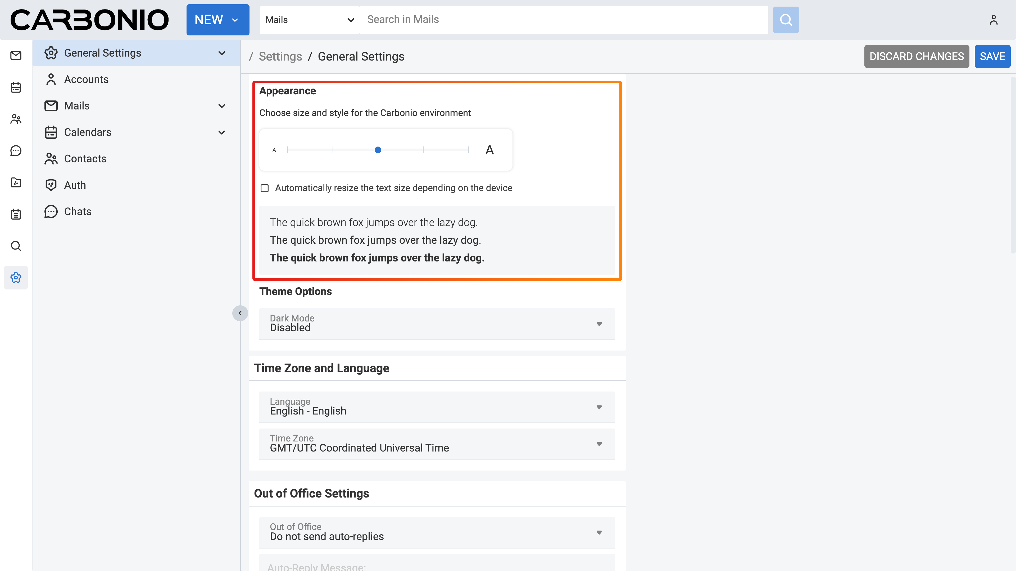 You can change the font size across all Carbonio web clients according to your preferences. To change the font size simply follow these steps: