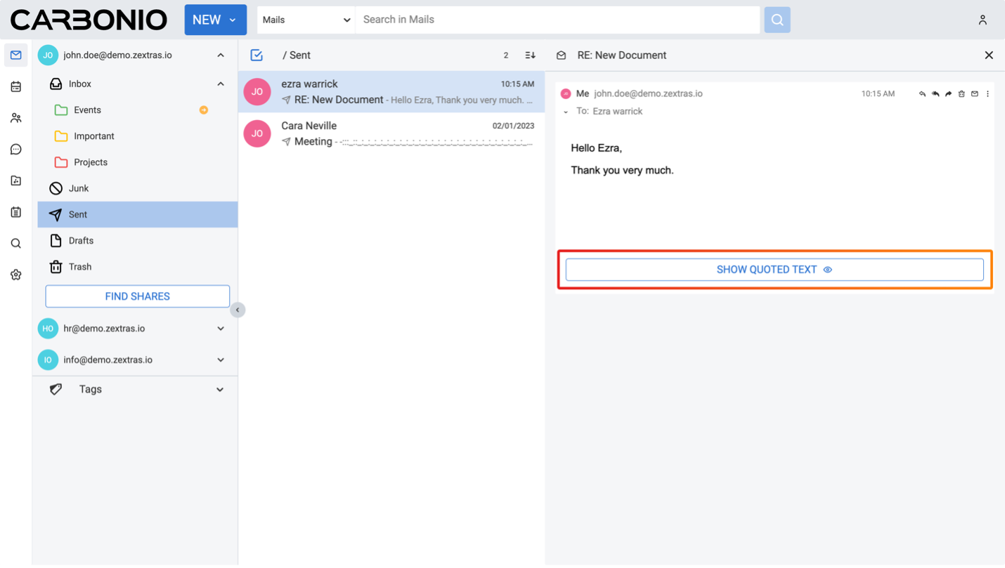 La visualizzazione per conversazione ti offre un modo completo per tenere traccia delle comunicazioni email all’interno di una discussione. Potrai accedere rapidamente a un’email e a tutte le relative risposte selezionando la conversazione dall’elenco email nel pannello principale. Per individuare una risposta specifica, dovrai espandere la conversazione facendo clic sulla freccia verso il basso accanto all’email originale. Questa azione mostra tutte le risposte annidate al di sotto, consentendoti di esaminare l’intera conversazione in una singola vista organizzata.