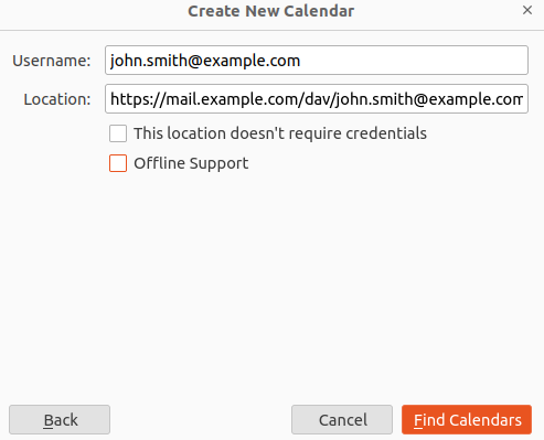Aggiungere un calendario Carbonio al tuo client CalDAV preferito è semplice e richiede solo pochi passaggi. La procedura è quasi identica su qualsiasi client; nella casella alla fine di questa sezione menzioniamo quali sono le differenze.