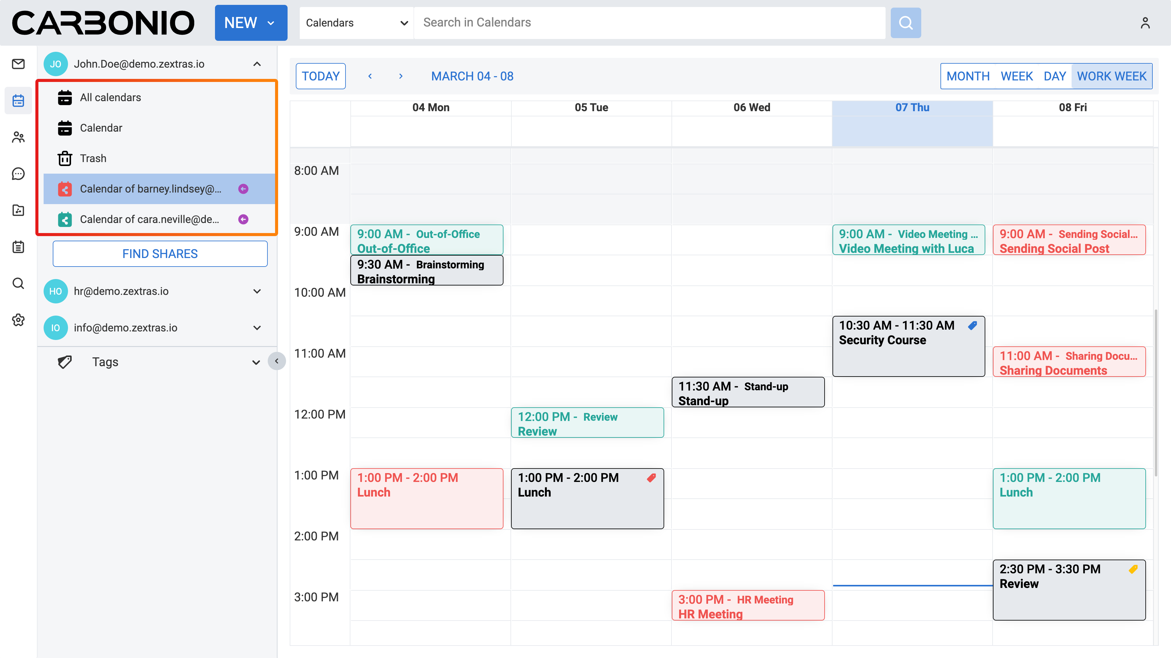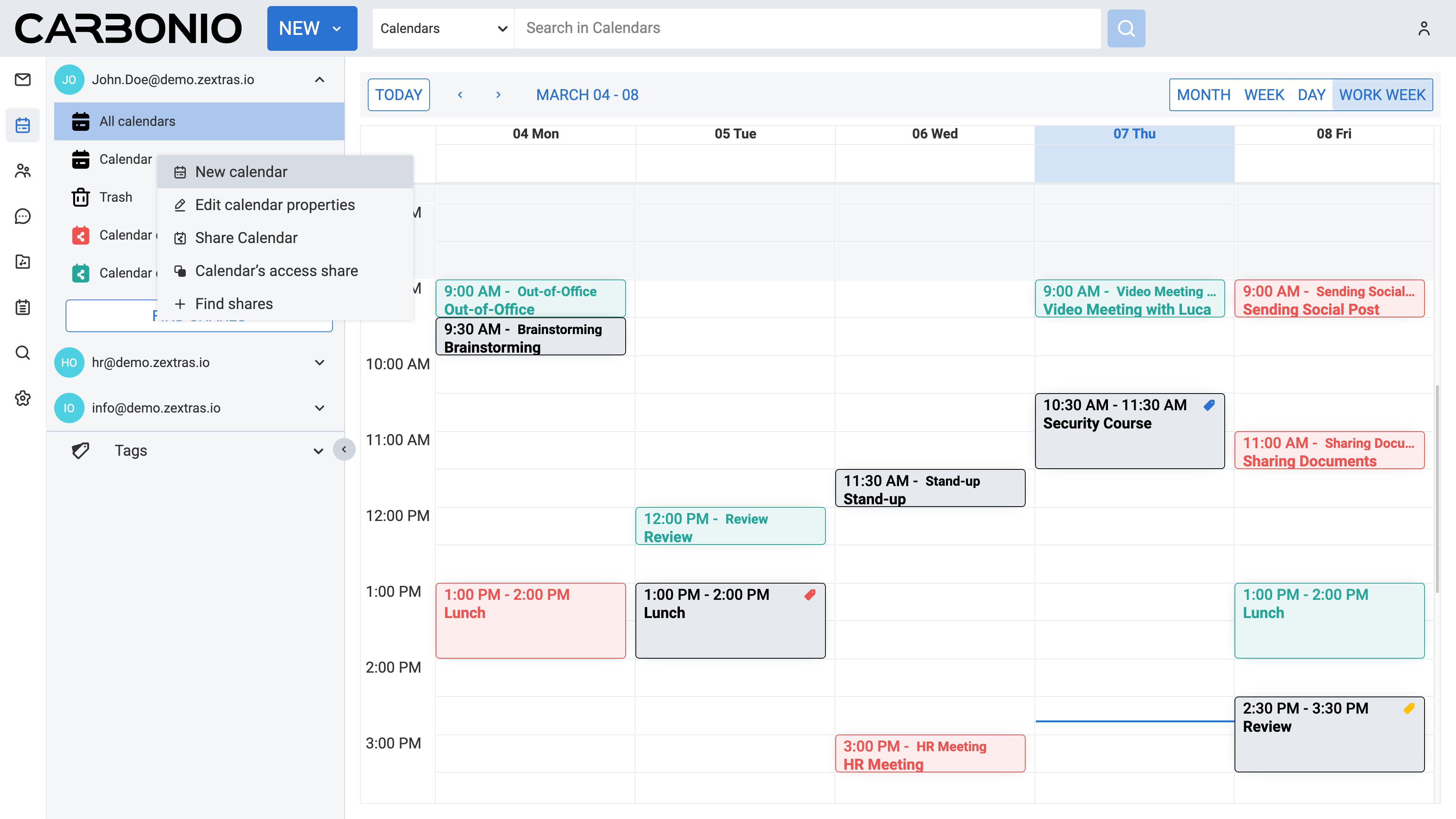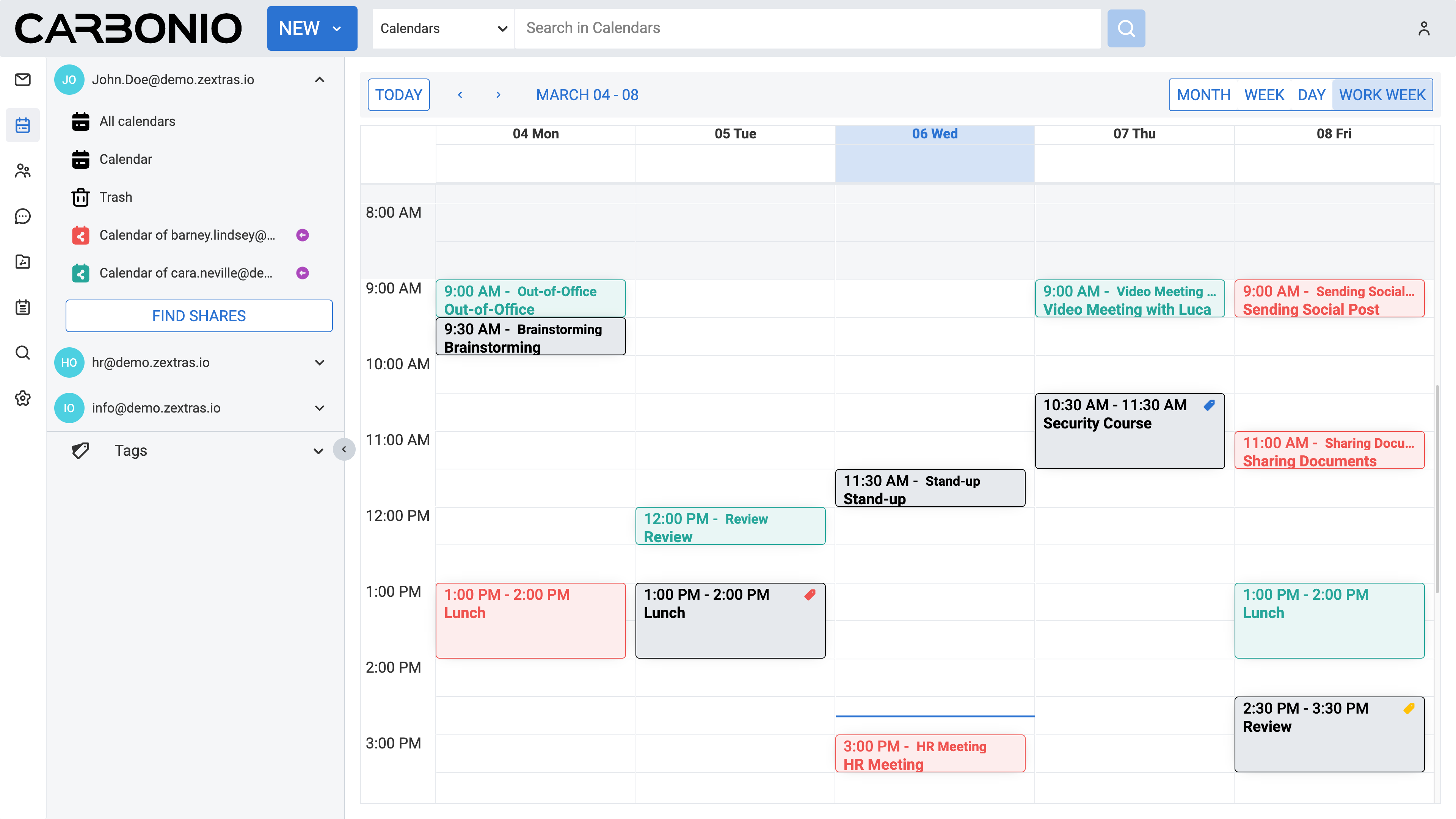 Puoi usare la funzione Calendario di Carbonio per gestire al meglio i tuoi appuntamenti, incontri ed eventi. Inoltre, Carbonio ti consente di condividere i tuoi calendari con colleghi o amici.
