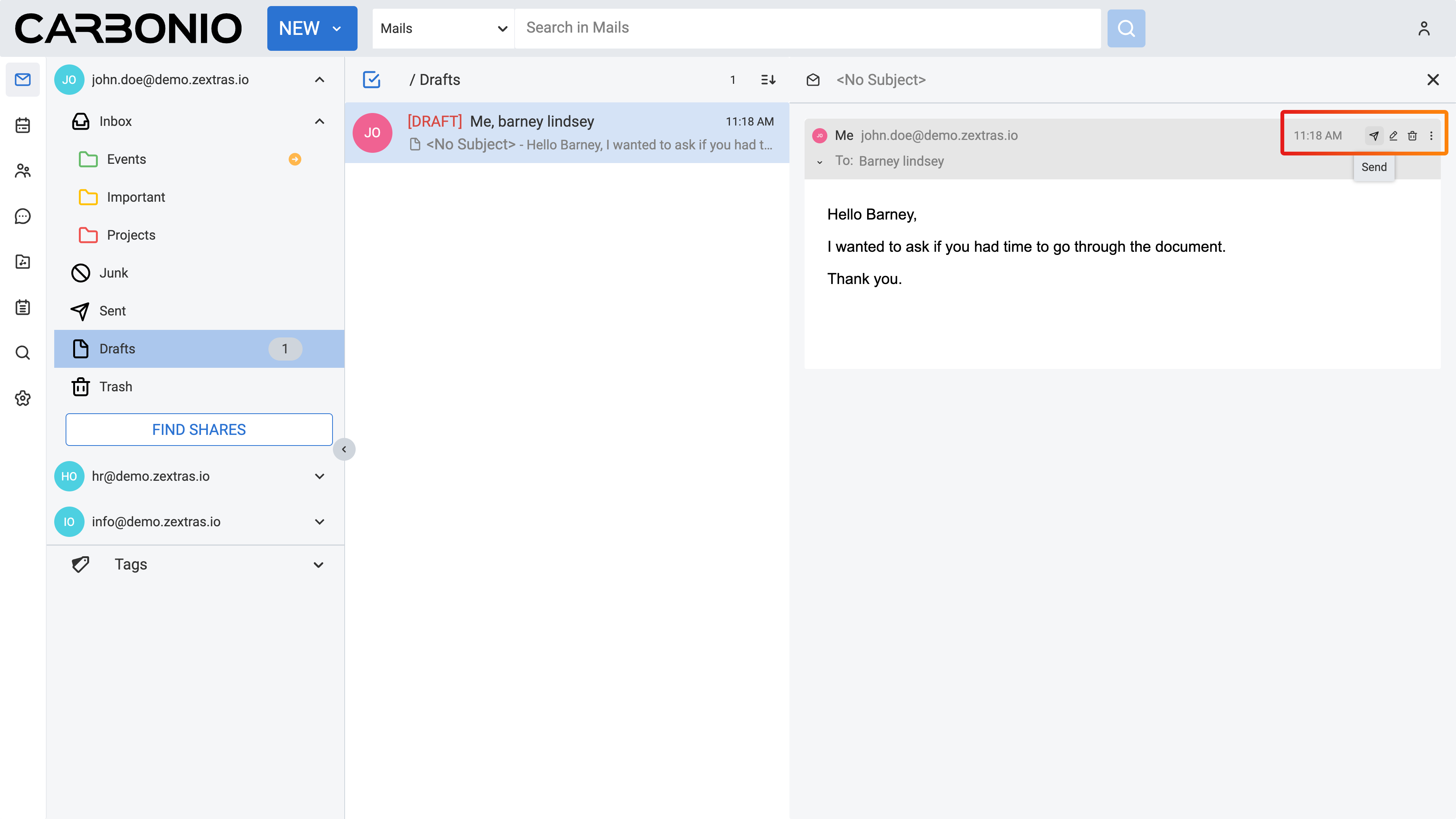 La tua email sarà salvata nella cartella Bozze, accessibile dal tuo pannello di navigazione.